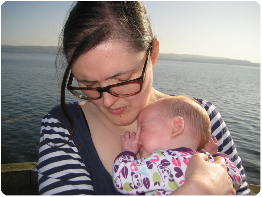 Last week, for the first time since everything kicked off in November, I had not a single medical appointment. Wowsers. My mum suggested that Dulcie and I should make the most of it and go and spend the week in Elgin with her and my dad. I so, so, so wanted to be there, but was very anxious about undertaking the long train journey (over four hours) on my own with a small baby and all her associated gubbins. I almost chickened out and didn't go, but actually the journey was better than usual and Dulcie was the ideal travelling companion. There she is, chilling out on the seat beside me with her crocheted blanket (one of them!) and her new favourite monkey toy. She fed most of the way to Elgin, slept on my chest most of the way back and hardly cried at all in either direction. What a star.